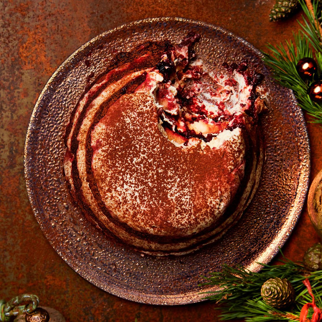 Als alle smaken van de herfst ineengerold zouden kunnen worden, zou deze meringuerol het resultaat zijn: verwarmende kaneel, gebrande honing, zoete appels en pittige sinaasappel komen bijeen in een dessert dat heel geschikt is voor de feestdagen van het najaar en de winter. Zorg ervoor dat alle onderdelen volledig koud zijn voor u ze samenvoegt – het is niet de bedoeling dat er veel vocht in de rol ontstaat. Begin een dag van tevoren met de appels en de room en houd ze tot gebruik in de koelkast.